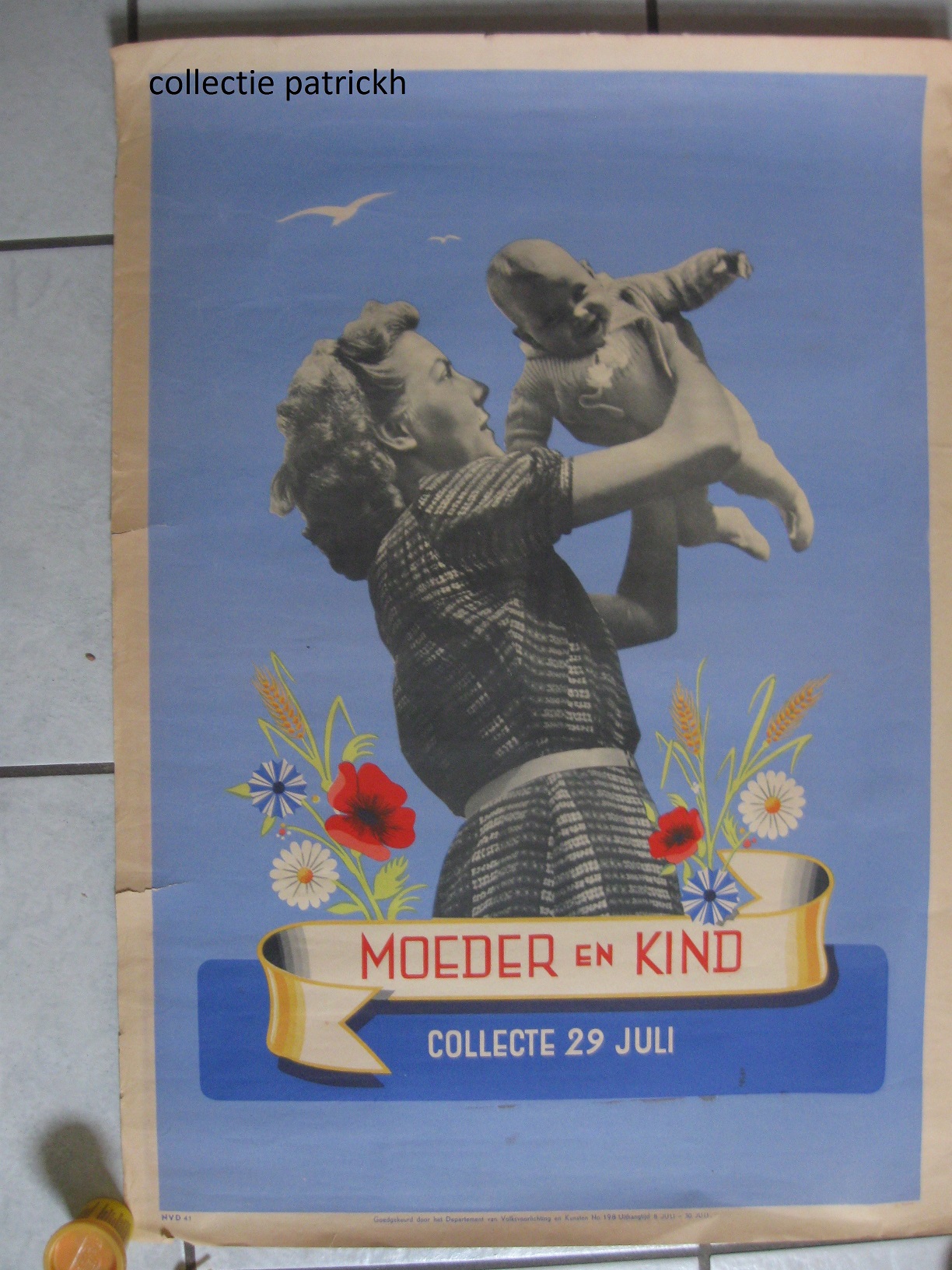 Het affiche Moeder en kind collecte ben ik ook nog geen tweede van tegengekomen. Het leuke is, dat ik ook nog een collectebus heb vd Winterhulp, waar een papieren wikkel omheen is gemaakt met als tekst MOEDER EN KIND.