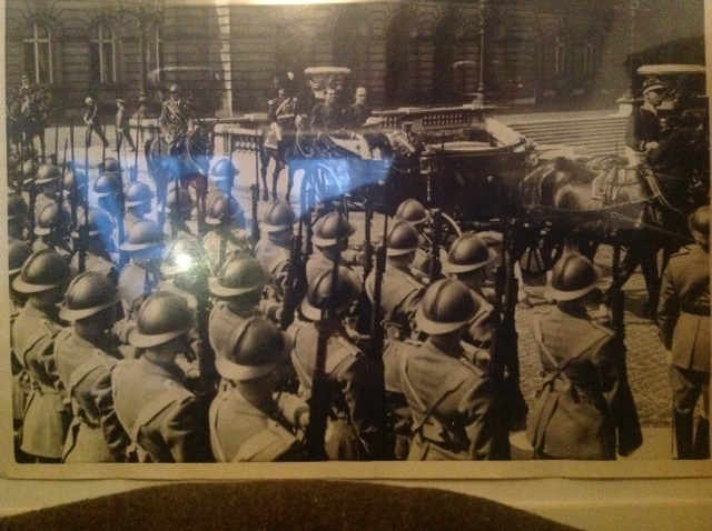 En nog een grote foto van 24 x 18 cm van koningin wilhelmina in brussel 1939 met belgische soldaten in houding.