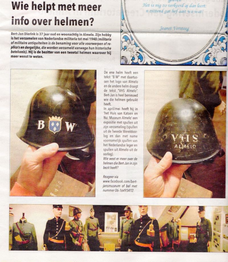 Naar aanleiding van een artikel in het weekblad ''Hallo Almelo'' waarin ik vroeg of iemand meer wist over 2 Almelose helmen.