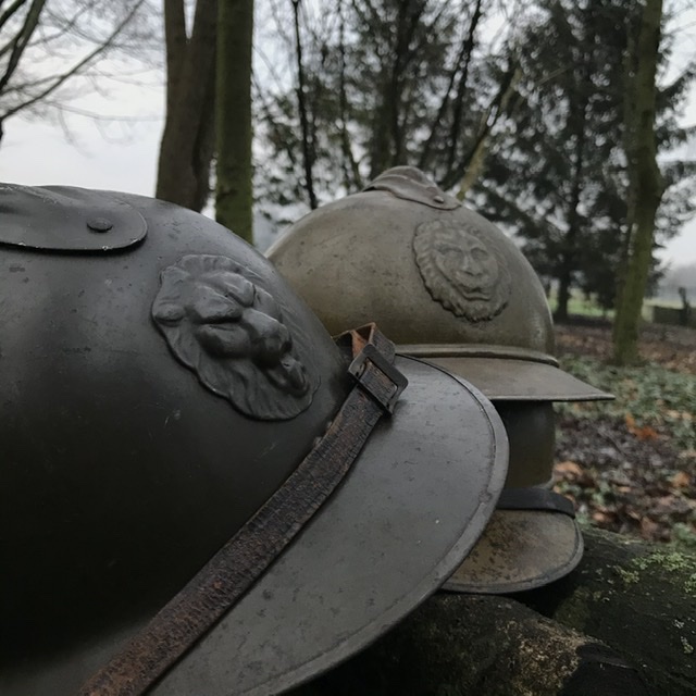 We zien twee Belgische M15 helmen en een M31 die hierboven al te zien is..