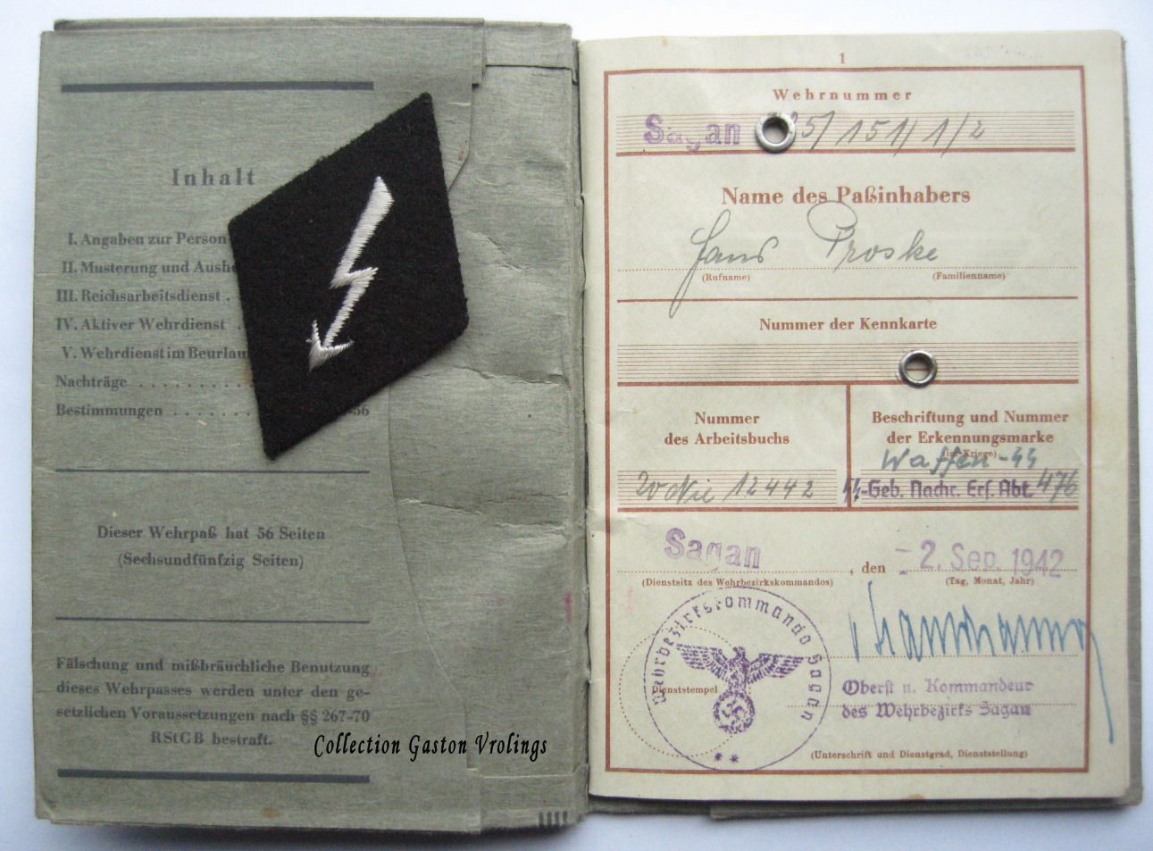 Nog even verder met het Funkerthema, hier is een SS funker armembleem en een Waffen-SS Wehrpasje van een SS Nachrichten abteilung.