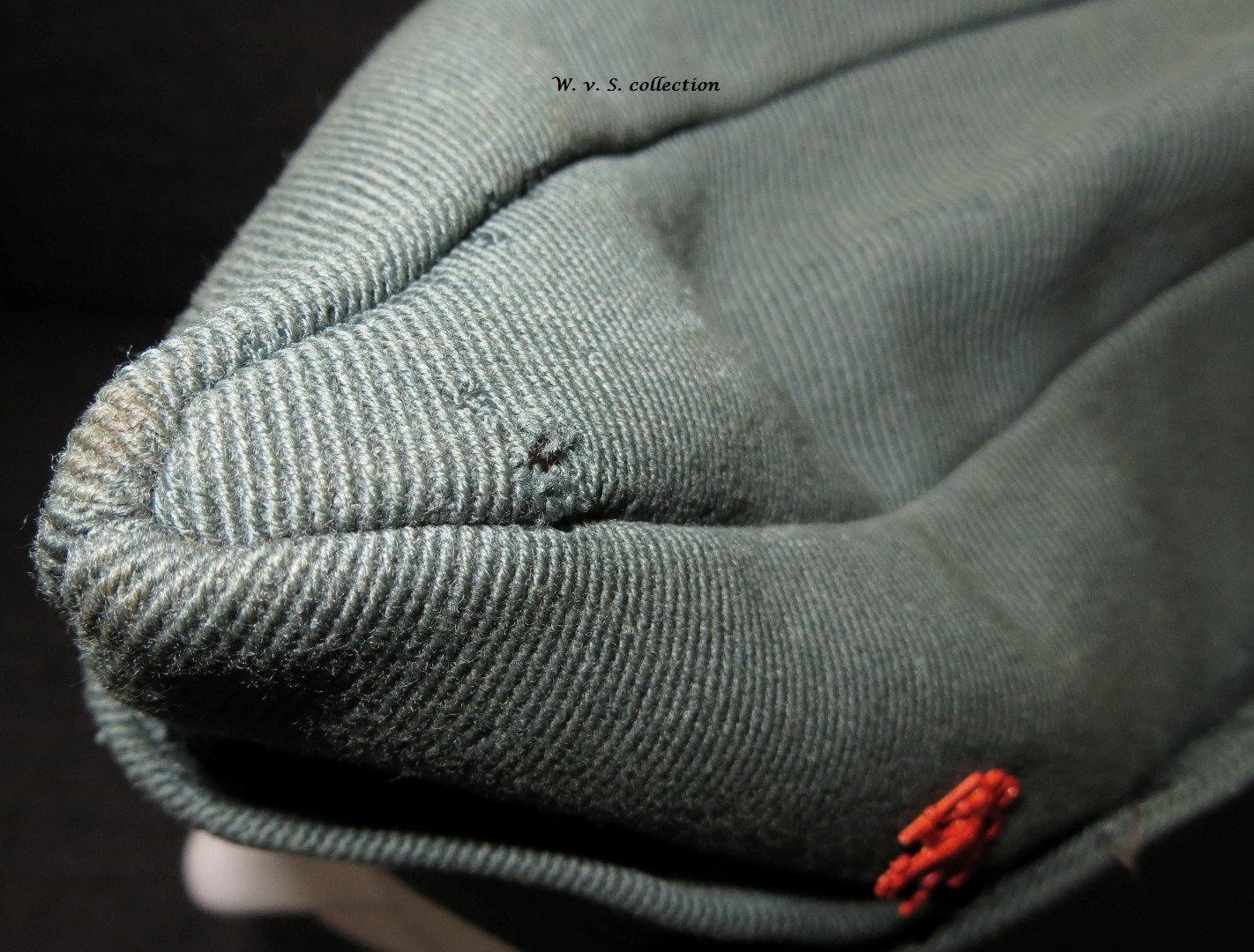 Hierbij een foto om even te laten zien uit hoeveel verschillende kleuren groen/grijs - grijs/groen een veldmuts kon bestaan. En zo waren er nog meer verschillende tinten.