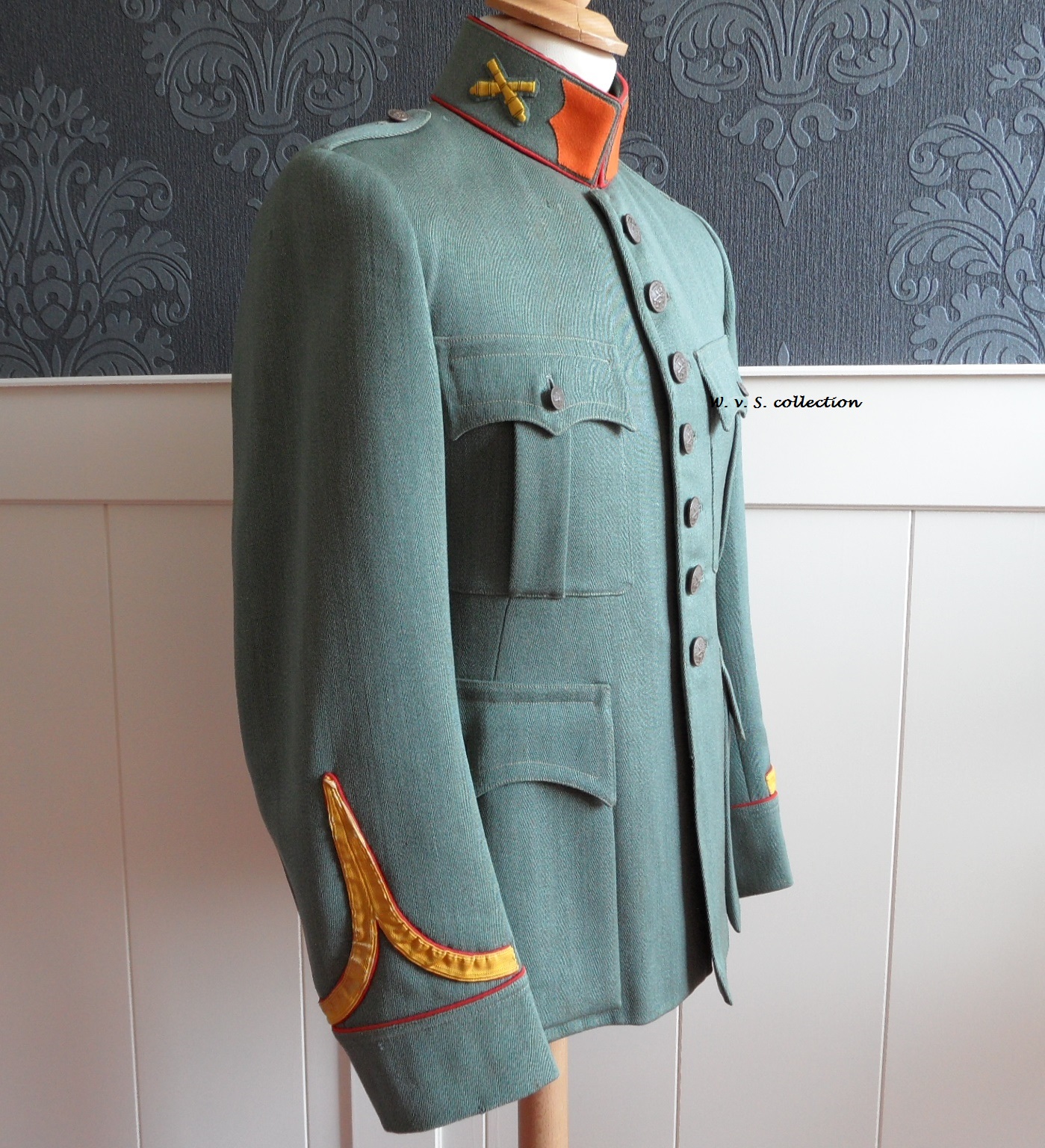 Hier één van mijn uniformjasjes. Het betreft een buiten model jas van een korporaal SROBA (School voor Reserve Officieren Bereden Artillerie)