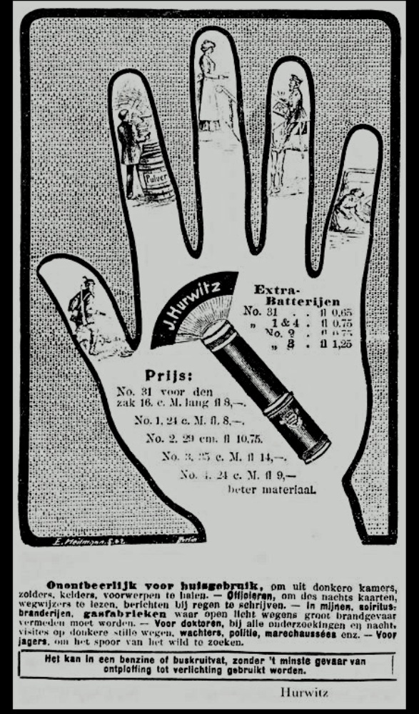 De afgebeelde zaklamp ''Hurwitz'' USA is een van de vroege zaklampen uit begin 1900.