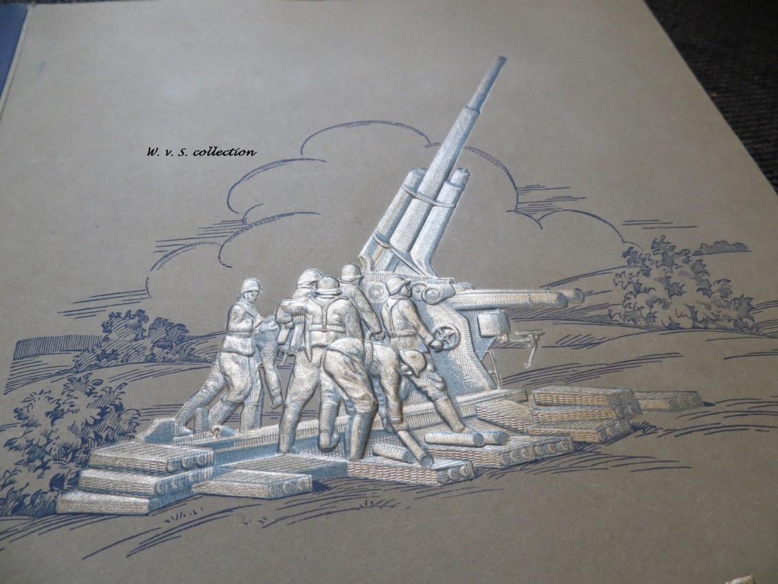 Wat ik zelf nogal fraai vind is de kaft die in reliëf gedrukt is met een afbeelding van een flak en bemanning. Afijn......hier wat foto's voor de liefhebbert.