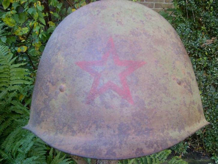 Een rode ster op zo'n Sovjet-Russische helm doet het immers altijd goed. Afgezien van het feit dat zo'n roestige SSh-40 helm net zo goed gevonden kan zijn op een naoorlogs oefenterrein van het Sovjet leger. Zonder binnenwerk en stempel is alles mogelijk.