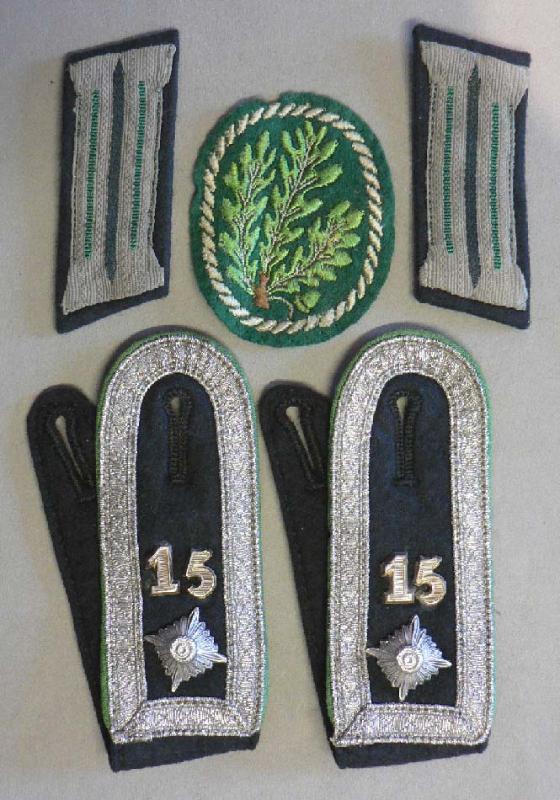 Bij mijn weten is dit setje van het motorisierte Infanterie-Regiment 15. De lichtgroene waffenfarbe is die van de Jäger eenheden. Of het van een Panzerjäger afkomstig is, weet ik niet. Weet niet hoe het gemotorisierte infanterie regiment is opgebouwd. Het zou kunnen.