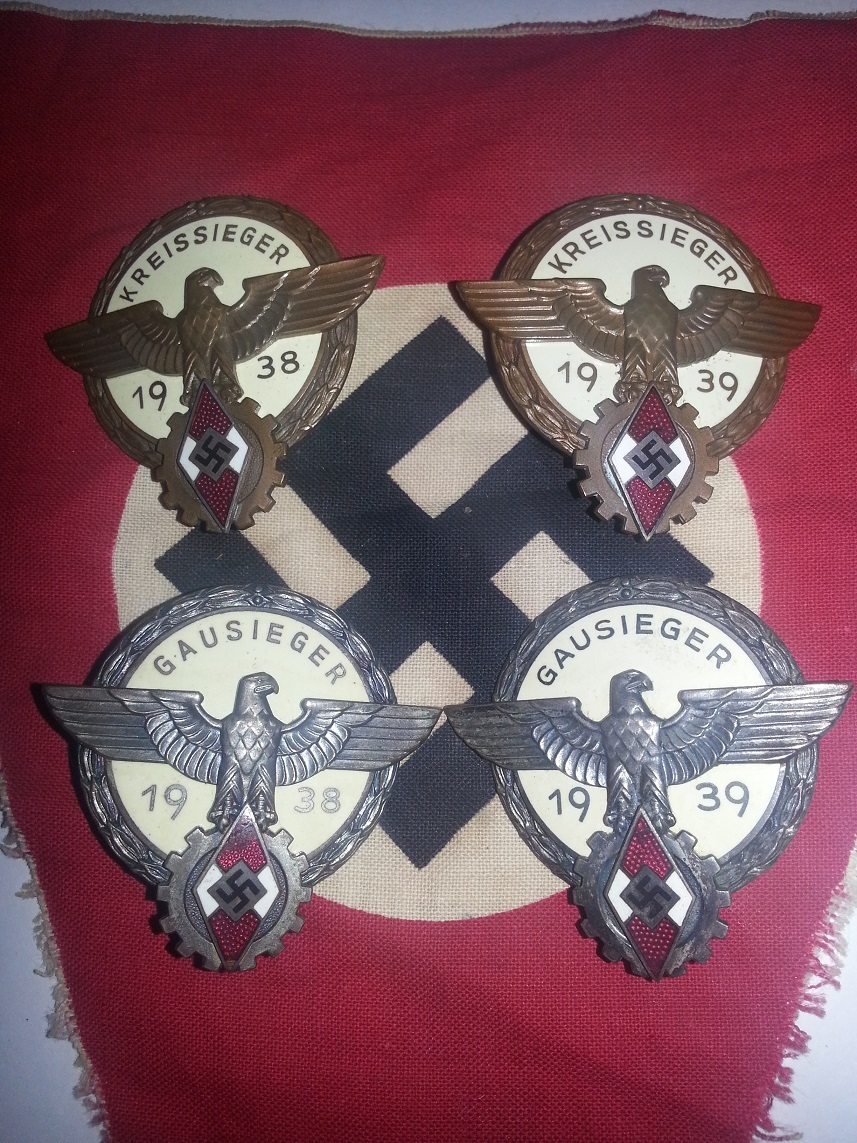 Hitler Jugend aanwinsten: Kreissieger 1938 en 1939, Gausieger 1938 en 1939. Nu alleen nog op zoek naar naar de 1942 versies en de Reichsiegers