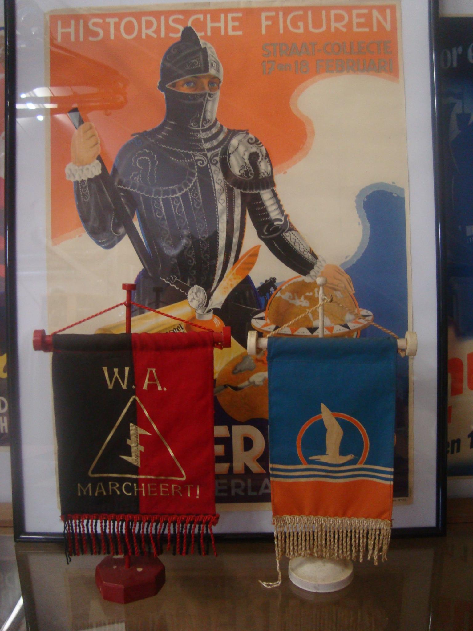 Twee tafel vaantjes. Eentje van de Jeugdstorm en eentje van de WA.