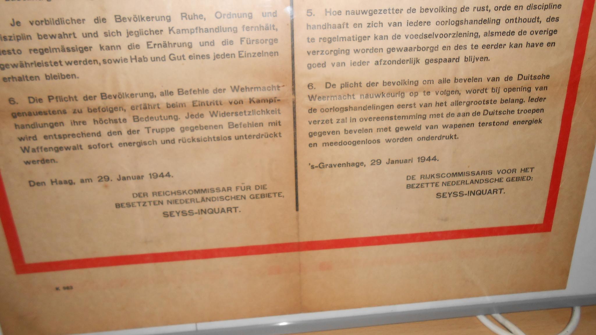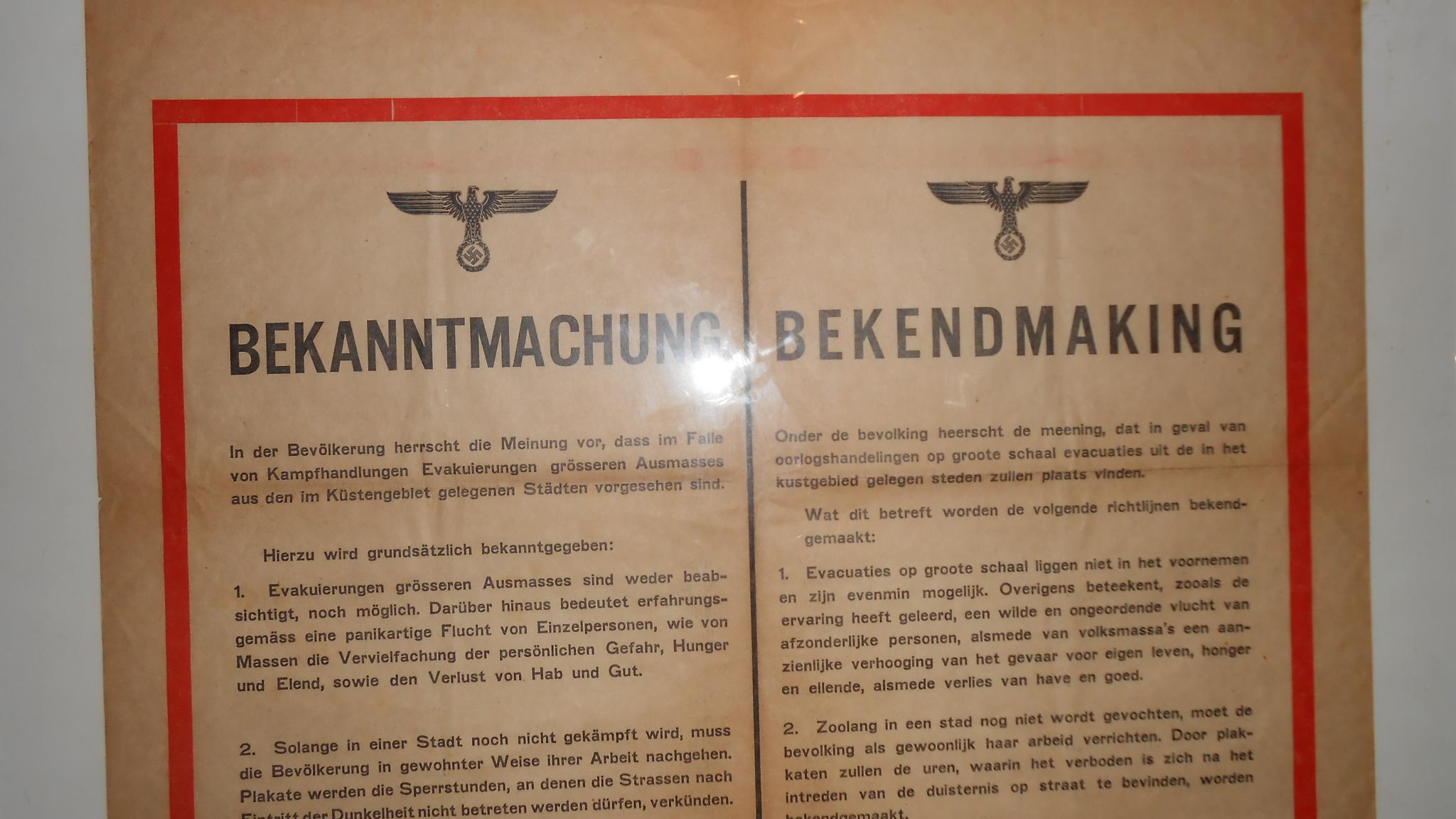 Het was weinig, totdat ik een stapel oude documenten tegenkwam. Daar zaten 4 vliegende Hollanders in, en een 70x40cm bekenntmachungsaffiche uit eind januari 1944 in goede staat. Ik was aangenaam verrast, kon het tezamen voor 7,50 euro meenemen. Verder de gebruikelijke hulzen die ik niet meegenomen heb, en natuurlijk ladingen met kinderspeelgoed etc.