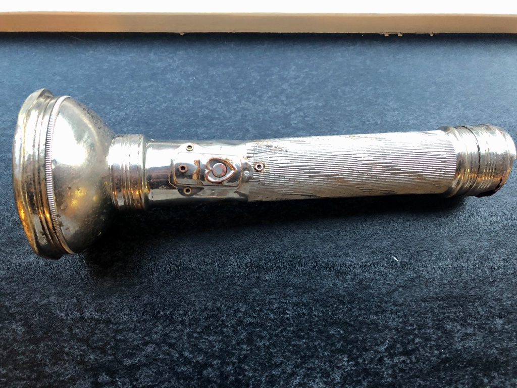 Ik zelf schreef:Deze nickled plated staaflamp is gemaakt in China begin 50e jaren voor civiel gebruik.deze fabriek werkte onder de naam