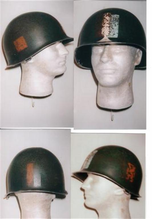 Mijn vader heeft een originele US helm door stoottroepen gebruikt met originele camo, helmnet en stoottroepen decal. Dat deze helm daar niet op lijkt is het enige dat ik er zeker van weet. Deze leeuw lijkt mij meer op de leeuwtjes zoals op PIB helmen te vinden is... het rode vlakje, kan dat geen infanterie zijn? 44/45 misschien.