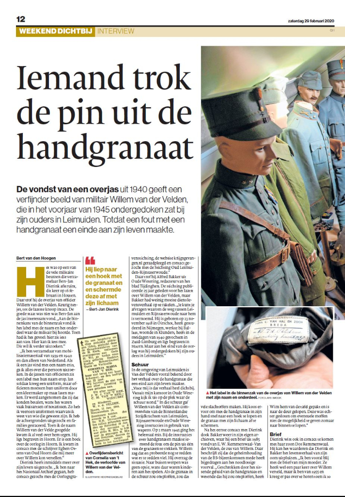 vandaag een mooi stukje over Aart van der Hoeven in de krant