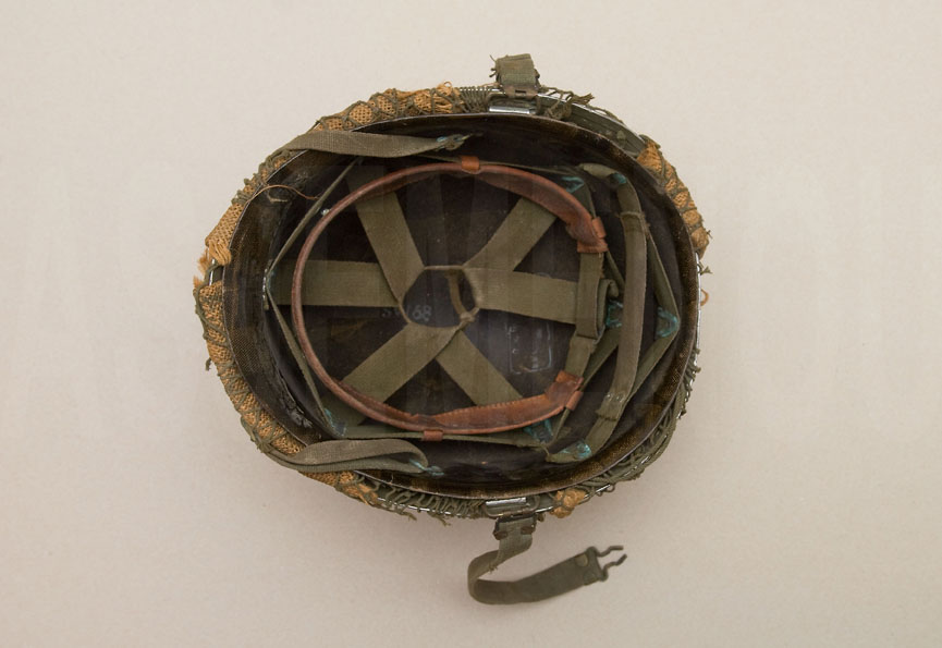 De buitenhelm is een Linnemann-Schnetzer uit 1958. Voorzien van jute overtrek en helmnetje.