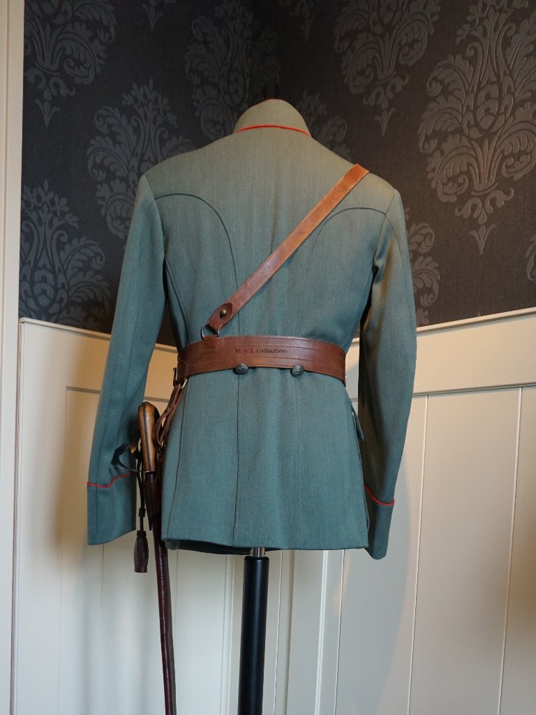 Neemt niet weg dat er toch iets te melden valt. Ik heb al een enkel jaartje een jas in mijn bezit, welke na het doorspitten van mijn eigen draadje, nooit echt onder de aandacht is gekomen. Waarschijnlijk is ie wel een keer op een groepsfoto voorbij gekomen. Het betreft een buitenmodel jas van een (reserve)officier voor speciale diensten der Artillerie. Te herkennen aan de blauwe vilten kraagstukken. De zogenaamde "vlaggen". De jas is op naam van ene heer Pabbruwe. Helaas niets over deze persoon kunnen vinden. In ieder geval was hij 2e (res.) luitenant in Oktober 1936 zoals op het label is af te lezen. De jas komt uit het kleding atelier van de fa. H.W. Blomjous uit den Haag.