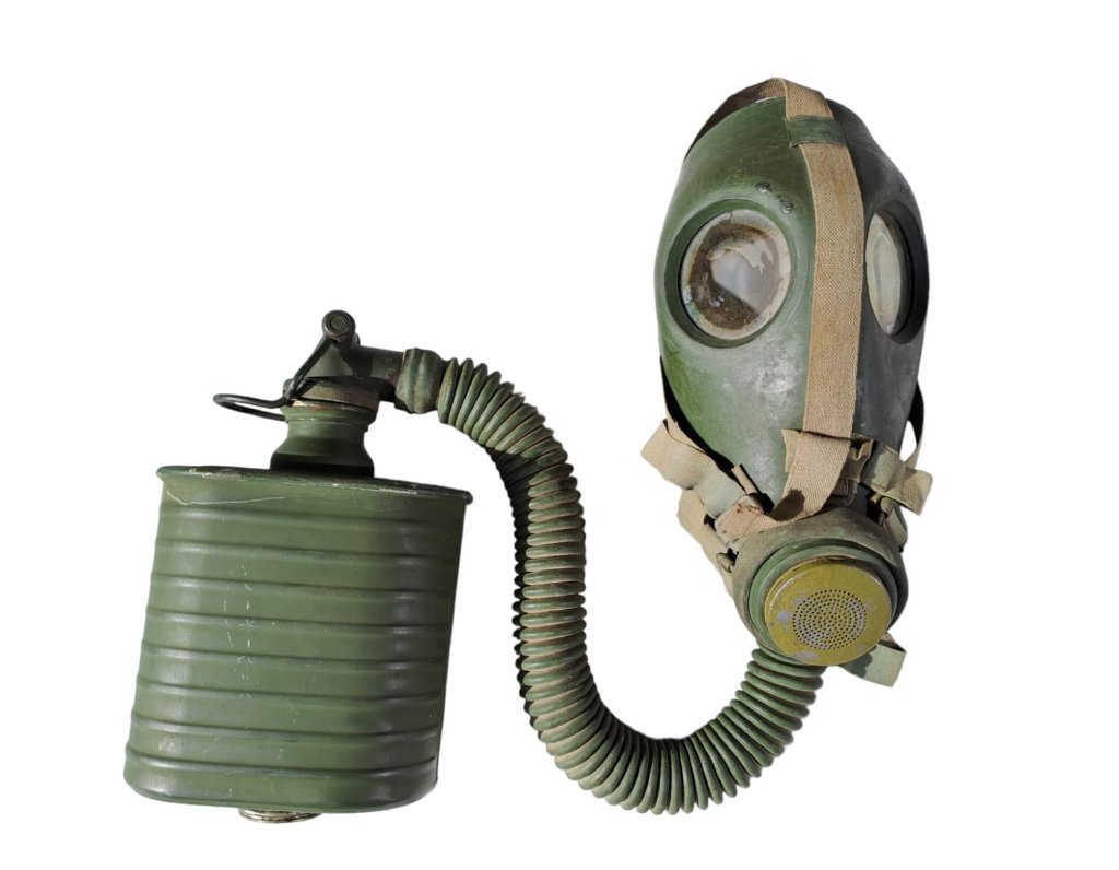 De gasmasker set van Wigle Britzel kapitein bij de Etappe Interdance. Op de controle kaart staat: