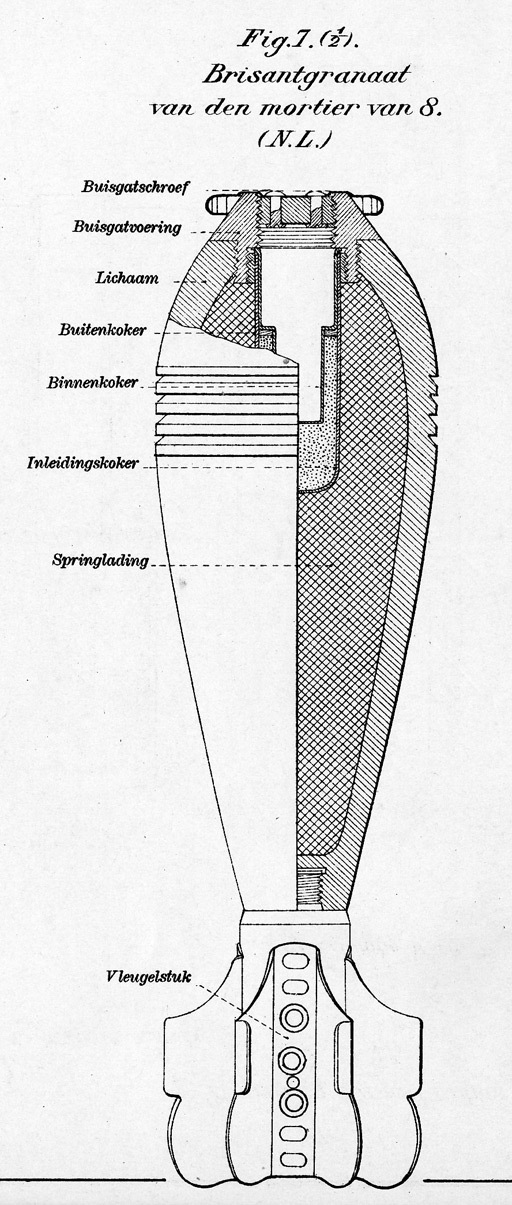 Ik ben adhv jouw informatie dat het een 81mm granaat weer gaan googelen. ik vond een afbeelding van Nederlandse 81mm brisantgranaat uit 1940.