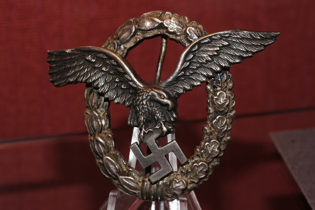Flugzeugführerabzeichen van BSW, dit is een vroege uitvoering van deze maker, dit kan je zien doordat de naam van de maker voluit op de onderscheiding staat (later werd dit veranderd in alleen BSW)