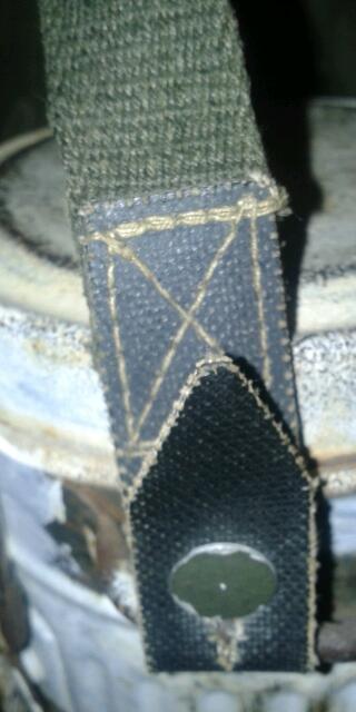 Ik heb dat eerste riempje ook op mijn gasmaskerbus zitten, die van mij is repro, dus ik heb niet te veel hoop voor die van jou.
