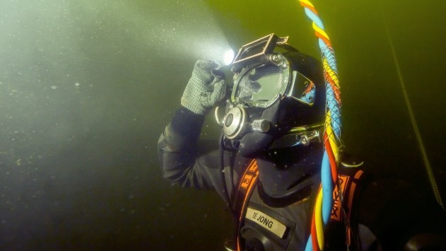 Duikers bereiden optakelen mijnenlegger voor
