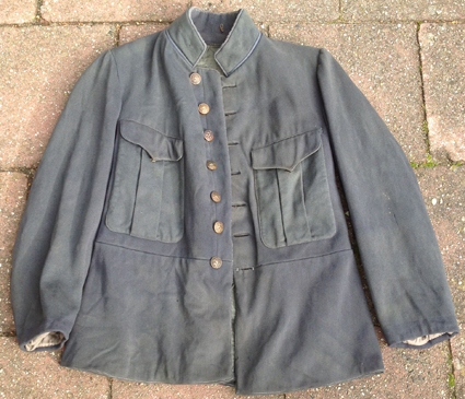 - dit jasje is begonnen als een jasje M1912 met blauwe kraag en blauwe manchetten.