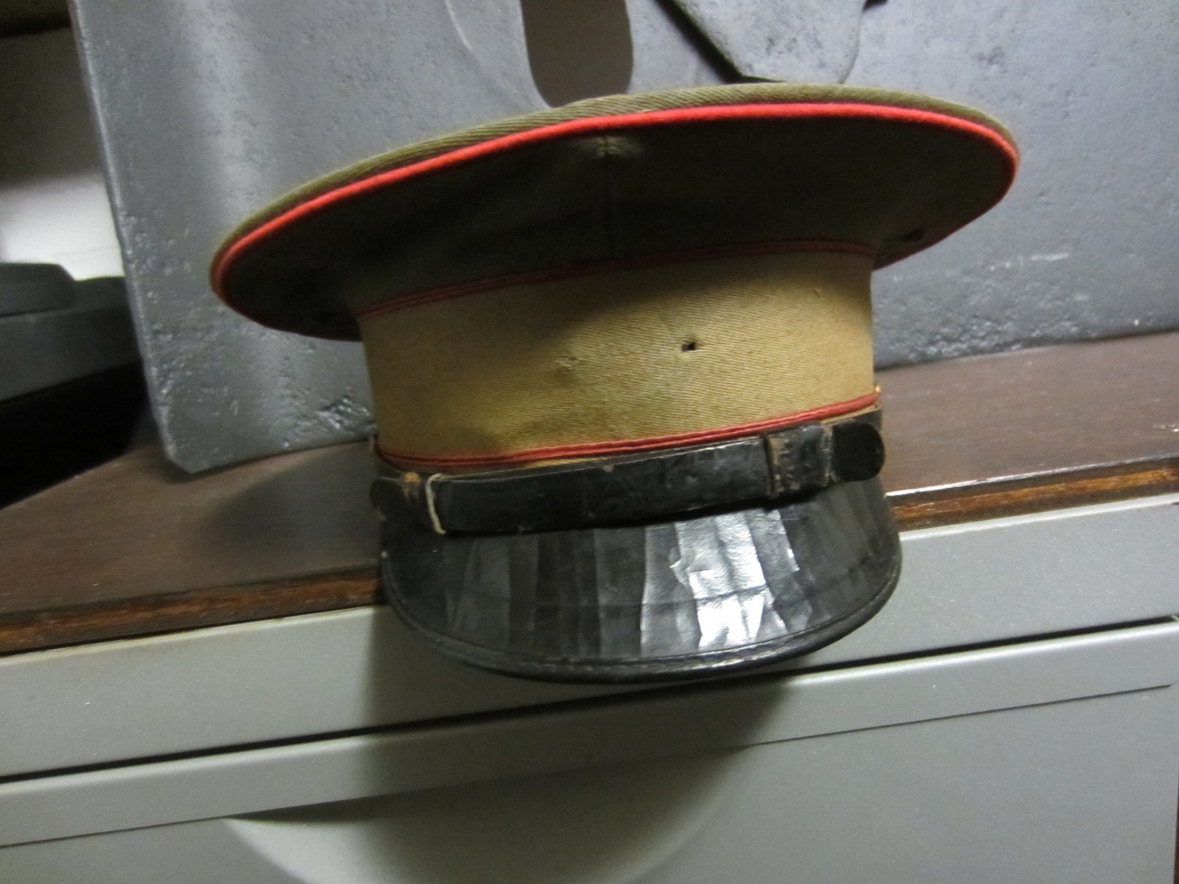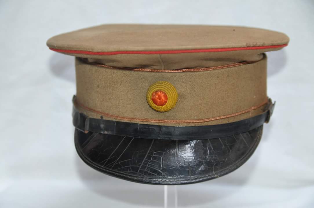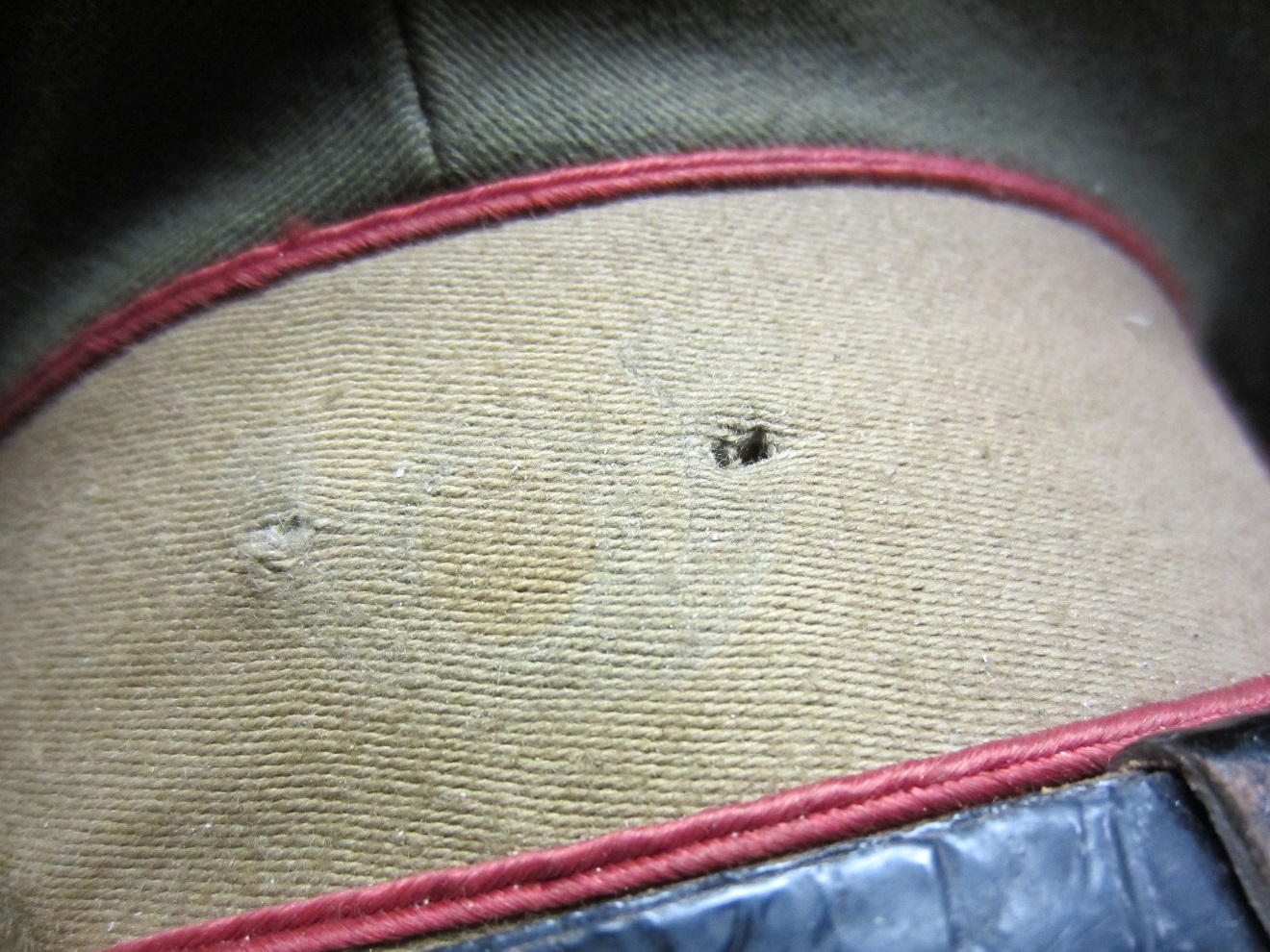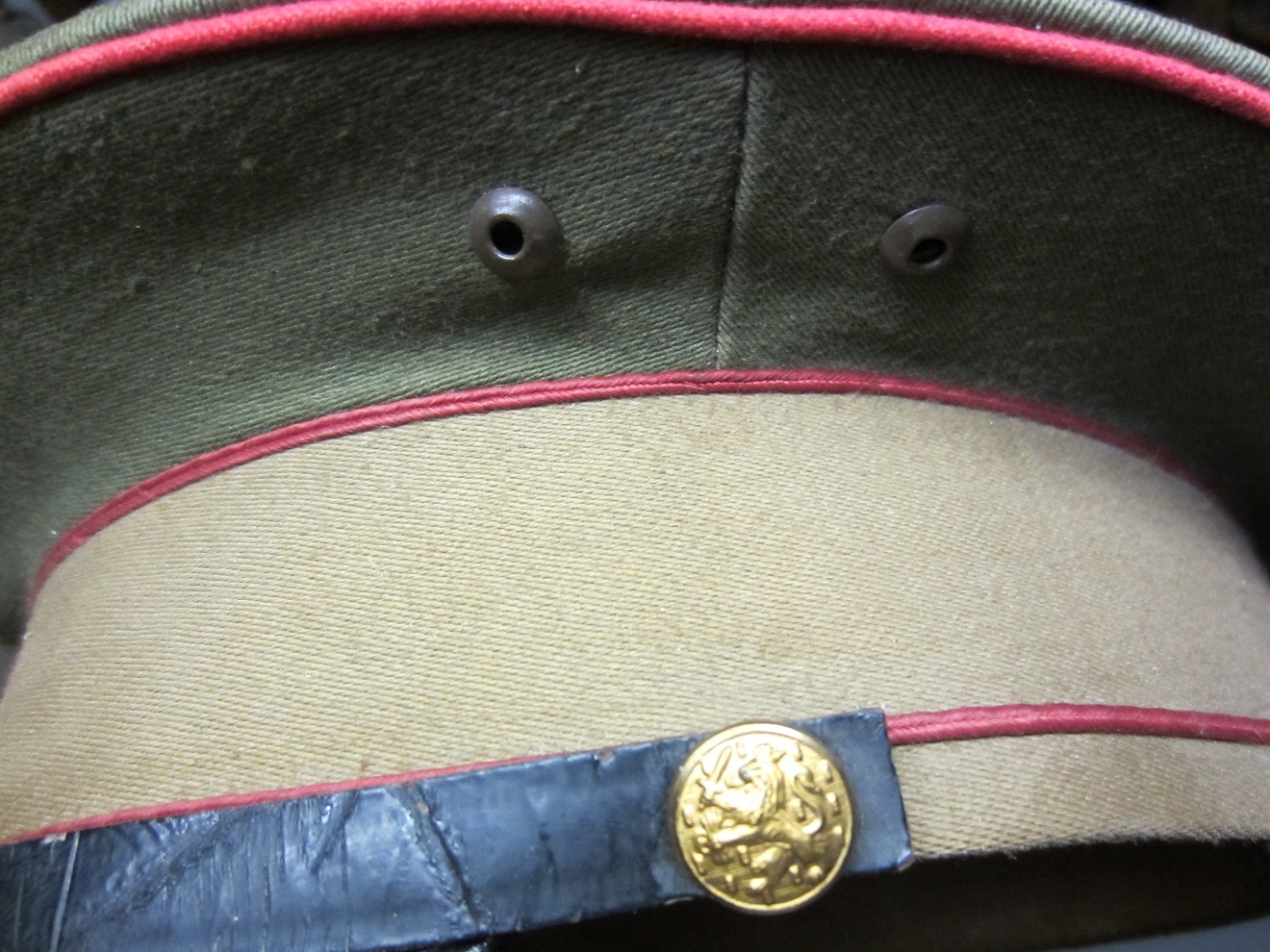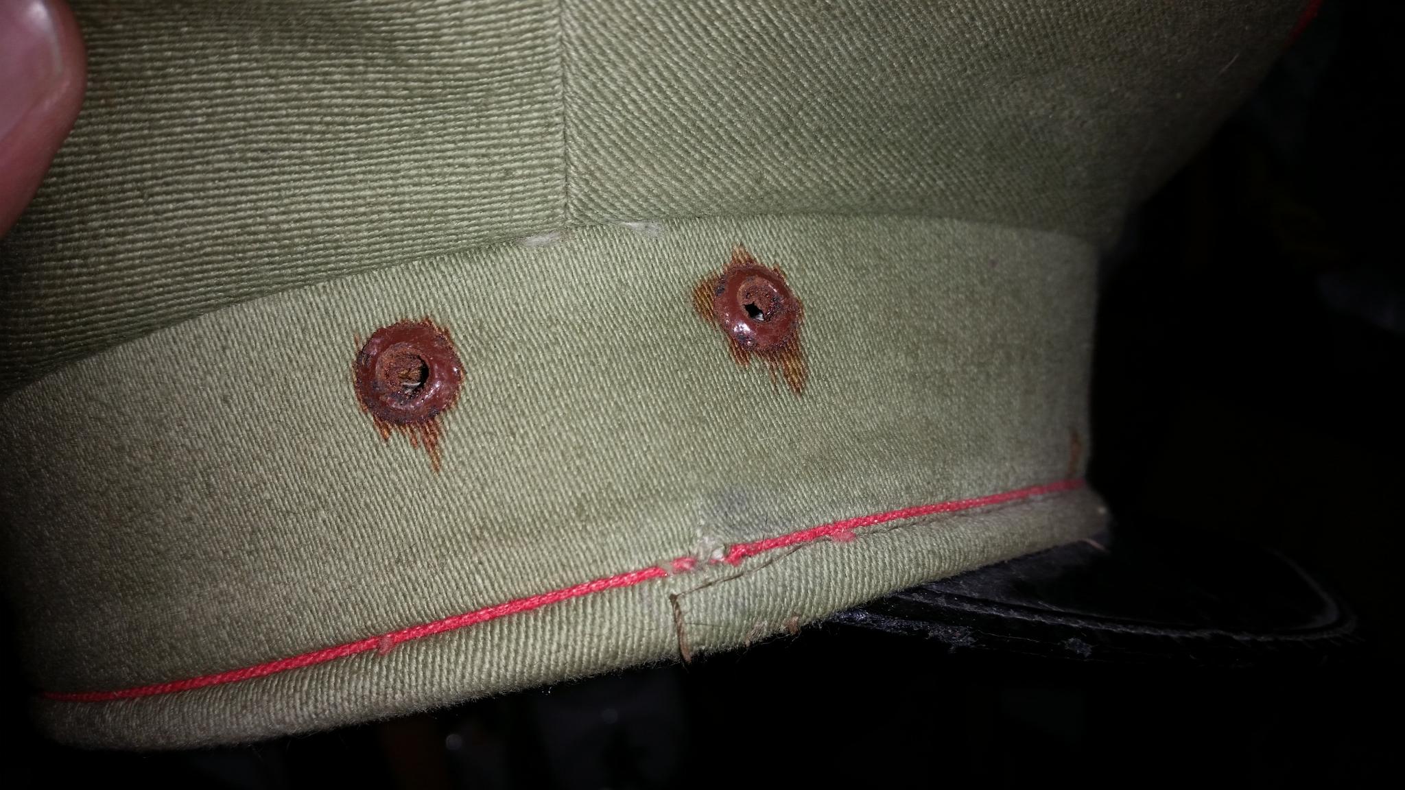 Dit weekend heb ik de volgende pet gekregen, hier heeft (aan de afdruk op de pet te zien) een jagers embleem op gezeten. De pet heeft een rode bies, dat volgens mij op artillerie duid. kan iemand mij zeggen of dit embleem er origineel opgezeten kan hebben en zo niet welk embleem er we op de pet zou horen?