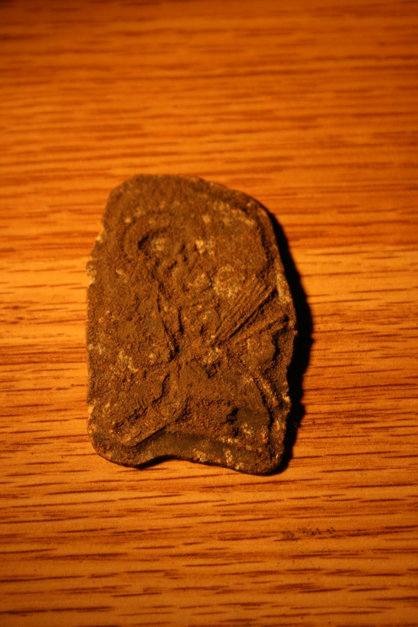 er bevindt zich ook een plaatje bij dat hier al geidentificeerd is als een schildje van een artilerie cavelerie plaatje van +-1900 dit lag in dezelfde put maar is een kleine andere periode.
