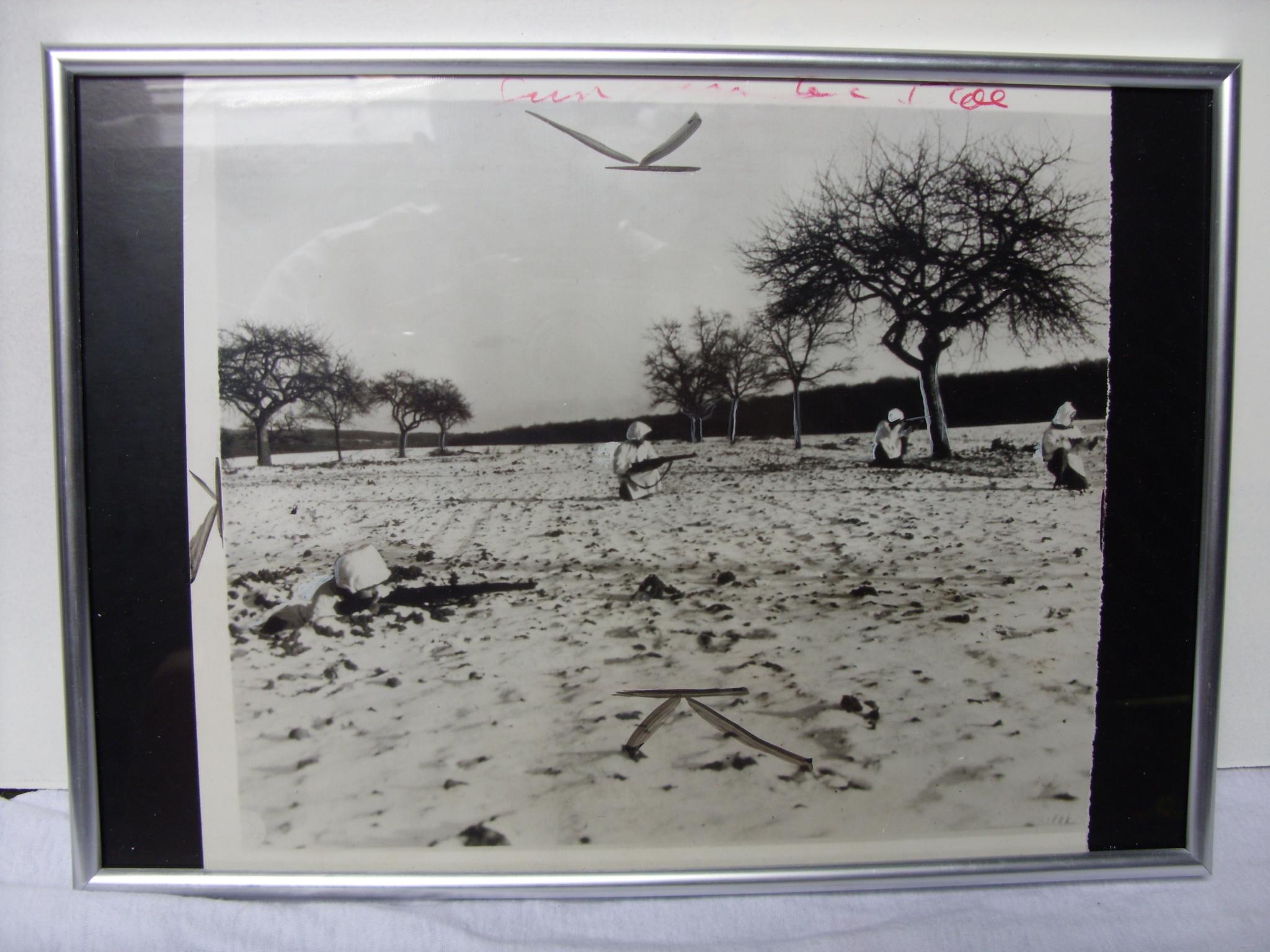 Die stift markeringen erop zijn van de censor/reviewer. Ze adviseren hiermee wat een betere compositie geweest zou zijn naar de fotograaf. Maar ze hielden er vaak helemaal geen rekening mee dat dat wel eens levensgevaarlijk zou kunnen zijn geweest voor hem.