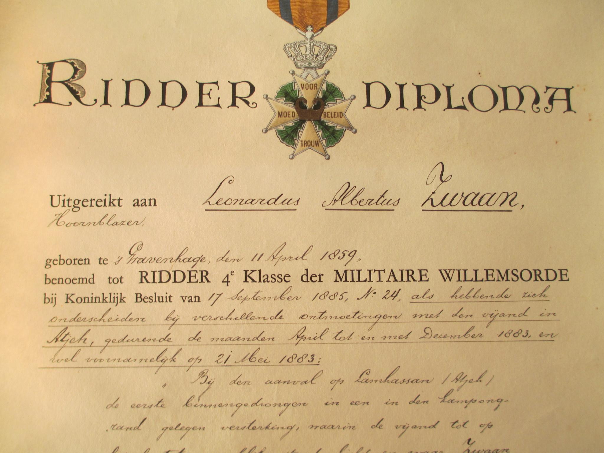 Re: Militaire Willems-Orde. L.A Zwaan 1883