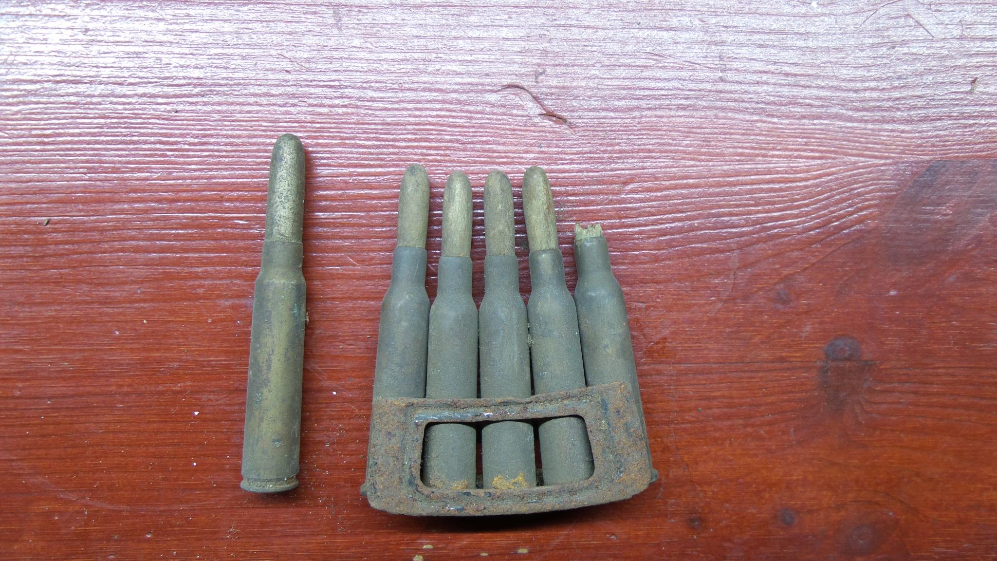 De andere patroon is een Belgische 7,65x54. Het standaard Belgische kaliber. Met de ronde neus zou deze voor de Belgische mauser moeten zijn.