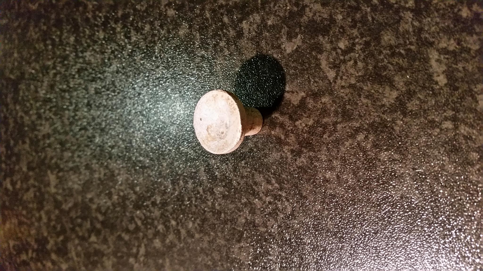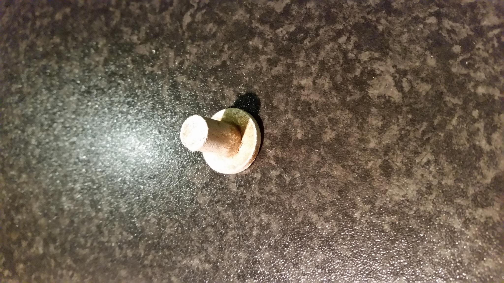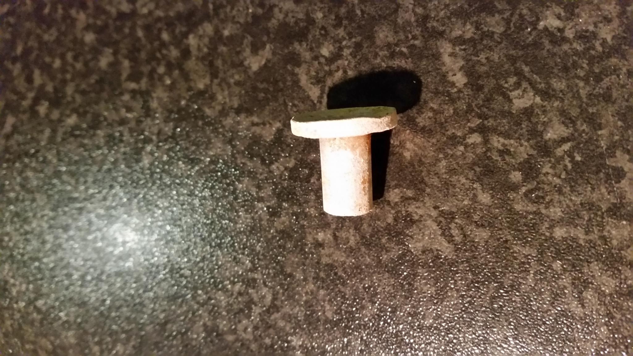 18 mm lang, boven 18 mm rond en de dikte van het staafje eronder is 8 mm. De bovenzijde is licht hol gevormd.