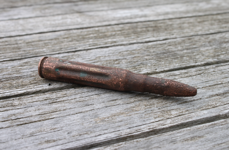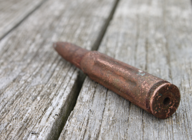 Het is een Duitse excercitiepatroon. Als je naar het bodemstempel kijkt zal je het productiejaar zien. De staat is niet echt geweldig, voor een munitieverzamelaar zou enkel het bodemstempel nog interessant kunnen zijn als de persoon daarop verzameld.