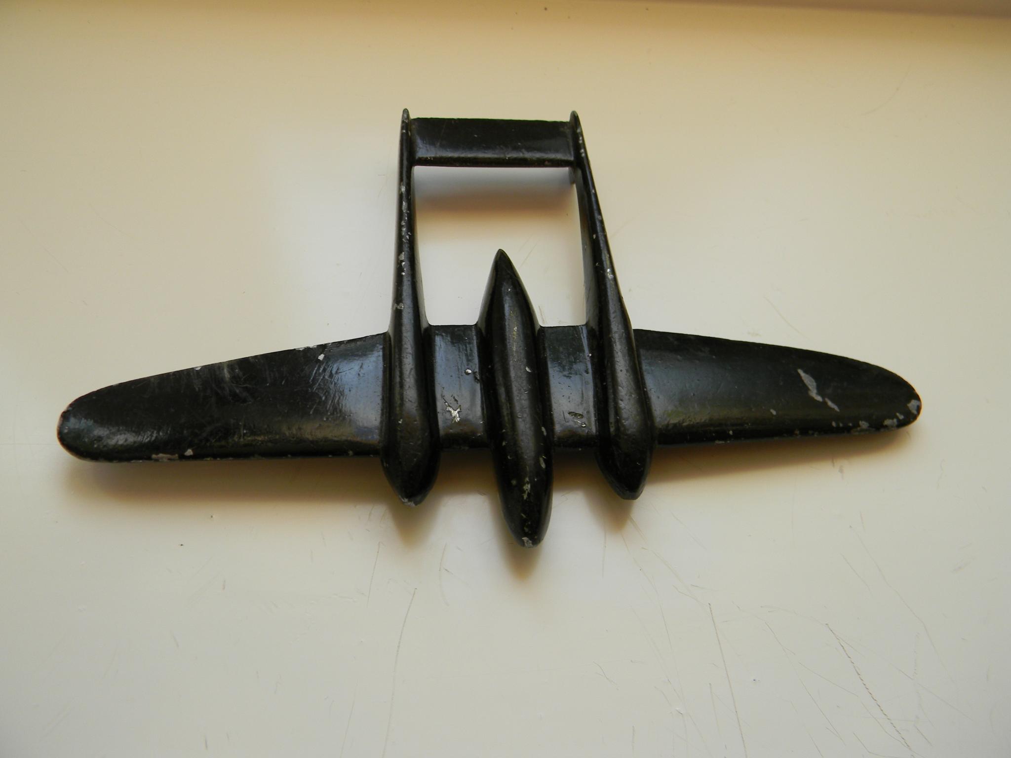 Deze heb ik ook ooit eens op een rommelmarkt gekocht. Het verhaal van de verkoper was dat het was gemaakt door een familielid die tijdens de oorlog bij de Hoogovens in Velsen werkte. Hier werden o.a. neergeschoten vliegtuigwrakken omgesmolten voor de Duitse oorlogsindustrie. Het stuk aluminium was meegesmokkeld. Iets wat ten strengste verboden was.