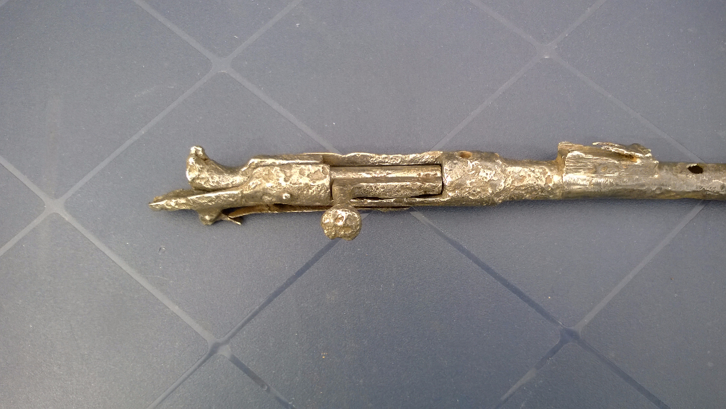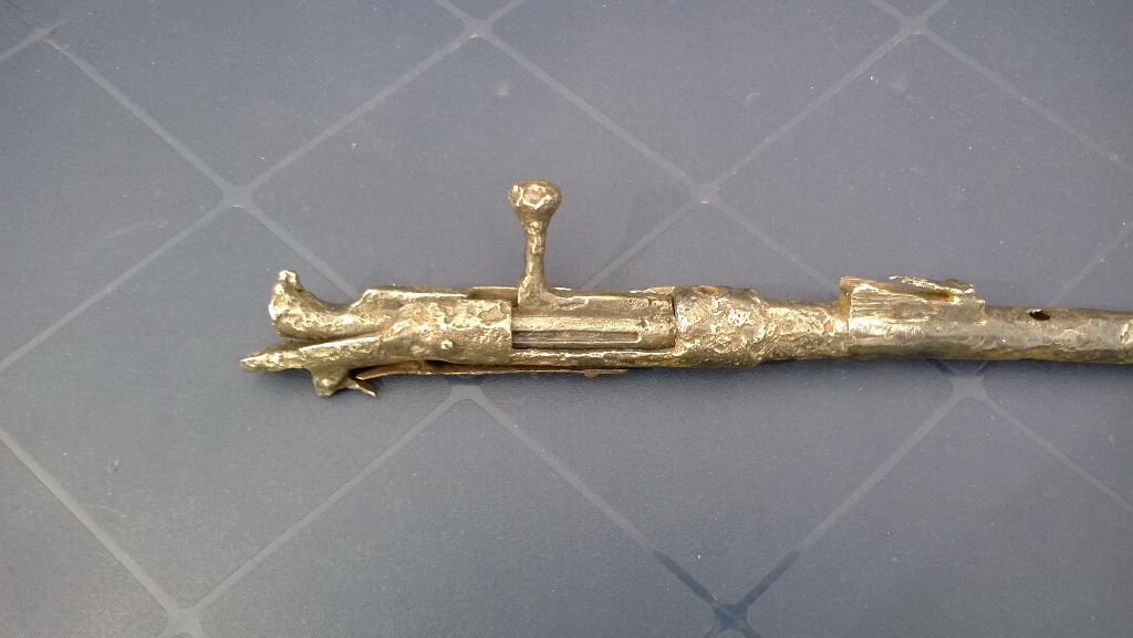 Tijdens werkzaamheden aan het riool in Sluis (zeeland) moesten wij door een laag oorlogspuin heen graven, ik had geluk dat de argeoloog die aanwezig was bij ons niet zulke goede ogen had, ik was verantwoordelijk om de puin in depot te rijden ivm ook aanwezigheid van asbest, daarbij stuite ik regelmatig op verschillende dingen er tussen, zoals een munitie kistje deze heb ik met alle plezier afgestaat aan de E.O.D aangezien er 3 mortieren in zaten ongebruikt. maar ook vond ik een helm, die heb ik al weten te indentificeren is een M42, en daarbij een Franse Chassepot modelle 1866 geweer, maar ook vond ik een Broche en daar zoek ik wat meer info bij, het geweer en de helm waren beide in best slechte conditie, de broche daarin tegen niet vandaar ik het vreemd vind en twijfel aan de echtheid ondanks dat hij van 2 meter diepte omhoog is gekomen, heb hem wel poosje in cola gegooid waardoor alles wat zichbaarder werd. zal foto's er bij voegen