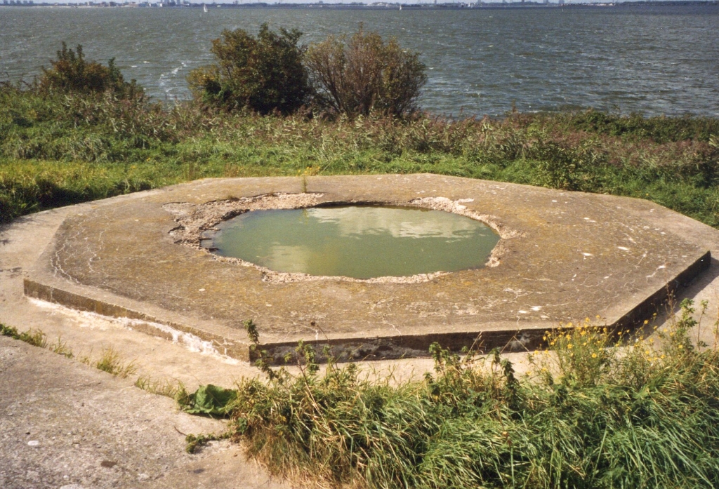 Tegenwoordig zijn op Pampus de betonnen funderingen alle drie nog aanwezig , bij Halfweg zijn ook nog alle drie betonnen funderingen inclusief de verhoogde sokkels aanwezig.