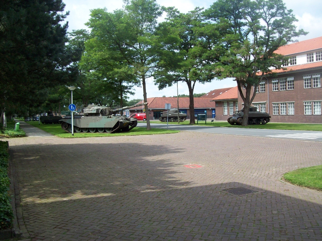 Het gebouw van de vroegere Verbindingsschool is na-oorlogs. Dit geldt niet voor de loods (gebouw) waarin zich de voertuigen bevinden! Dit deel van de kazerne, samen met de legeringsgebouwen er tegenover, is de vroegere kazerne voor het 2e eskadron Vechtwagens (het 1e esk. zat in Vught) en in de huidige voertuighal waren de Landsverk M.38 voertuigen gestald. Historische grond!