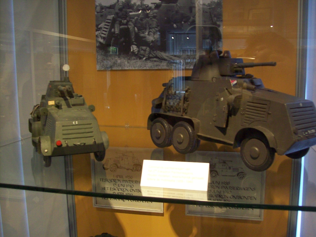Het niet-voertuigengedeelte zit in het gebouw van de voormalige verbindingsschool. Als je daar voor staat, loop dan even naar links, je komt een brede trap tegen. Hier, op deze trap, is de na-oorlogse cavalerie begonnen! Bij een bezoek door prins Bernhard hadden de vooroorlogse cavalerie-officieren zich, gekleed in attila, verzameld om aan Z.K.H. te vragen of het tankwapen onder het wapen der cavalerie geschaard kon worden. Aldus geschiedde!