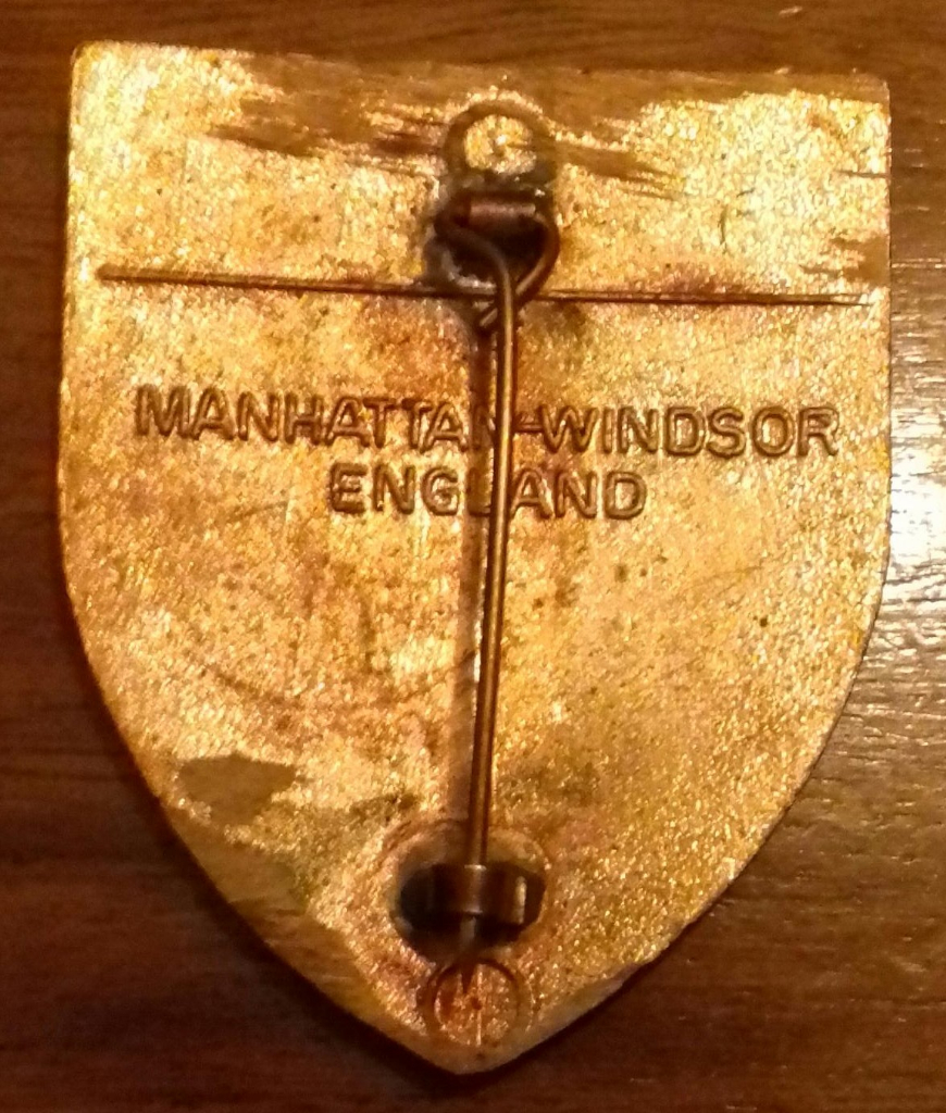 Hier een foto van de achterkant.De badge is gemaakt in Engeland bij Manhattan-Windsor zeg maar de Snel Braber van de UK. Het is een mooi ontwerp maar onbekend.Het leuke is wel dat ik ook enkele Nederlandse badges hebt die gemaakt zijn in de Manhattan-Windsor fabriek