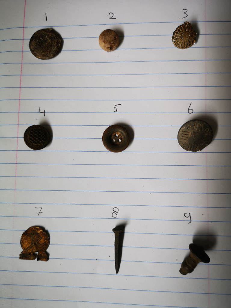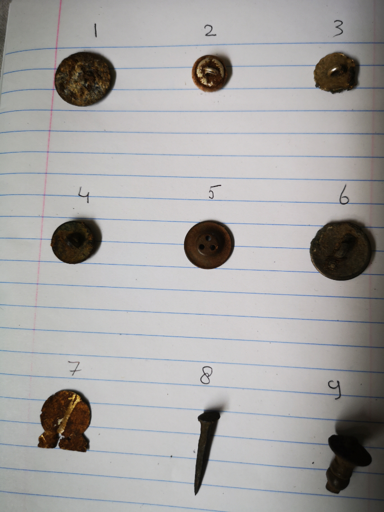 De spullen op de foto's zijn gevonden in een oud oorlogsgebied.