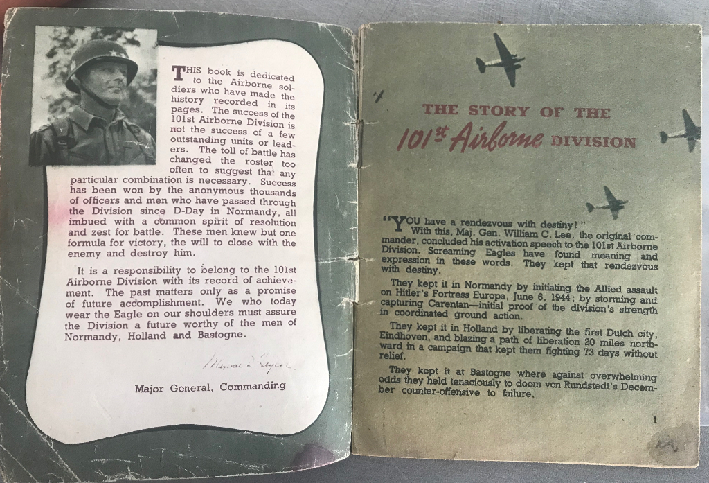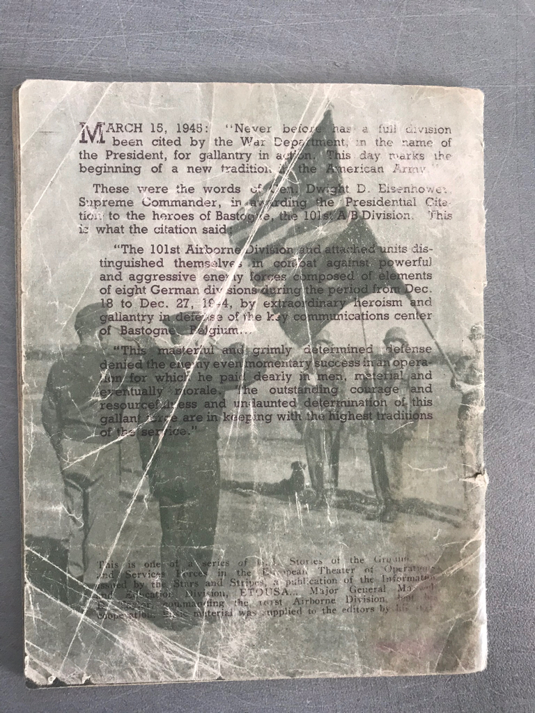 Een mooie aankoop van afgelopen zomer, een booklet van de 101st Airborne Divisie. Deze boekjes werden na de oorlog uitgereikt aan de troopen om terug te kijken waar de divisie overal heeft gevochten. Deze boekjes worden steeds schaarser vooral van bepaalde divisies. Heb het boekje 1x open gehad om van alle bladzijdes foto’s te maken, hierdoor hoef ik hem niet meer open te maken.