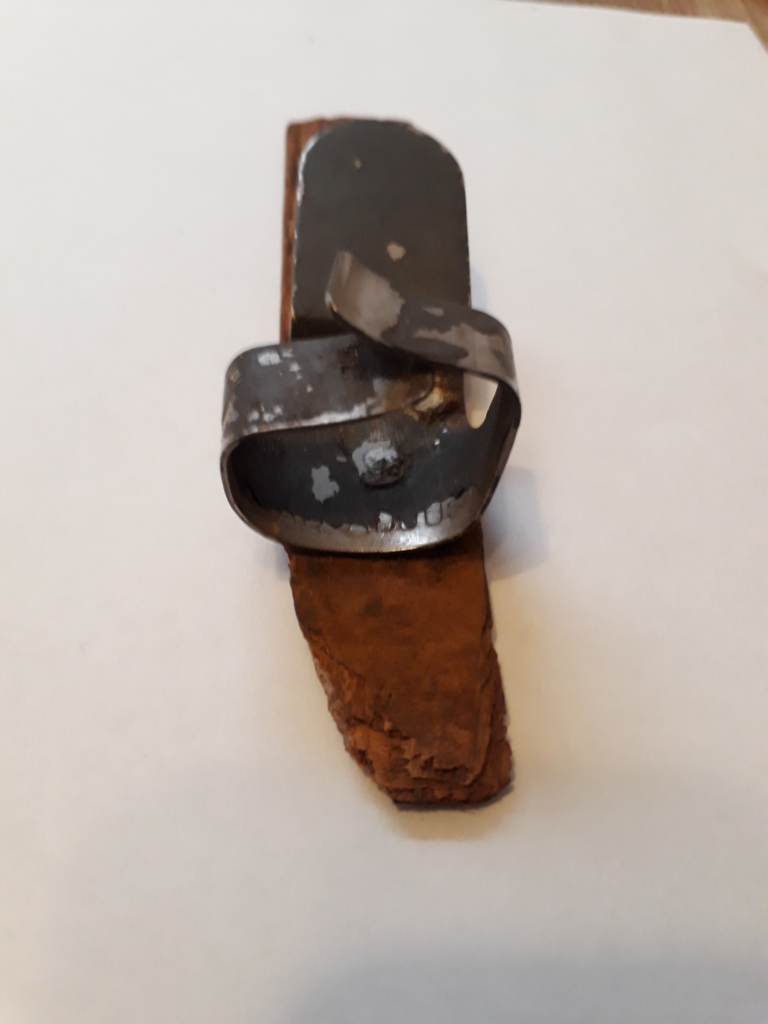 Lijkt een soort zelfgemaakt houdertje, misschien is het om een mes in je laarzen te steken?