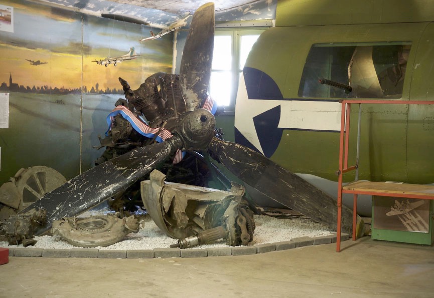 Motor en onderdelen van een Boeing B-17 Flying Fortress.