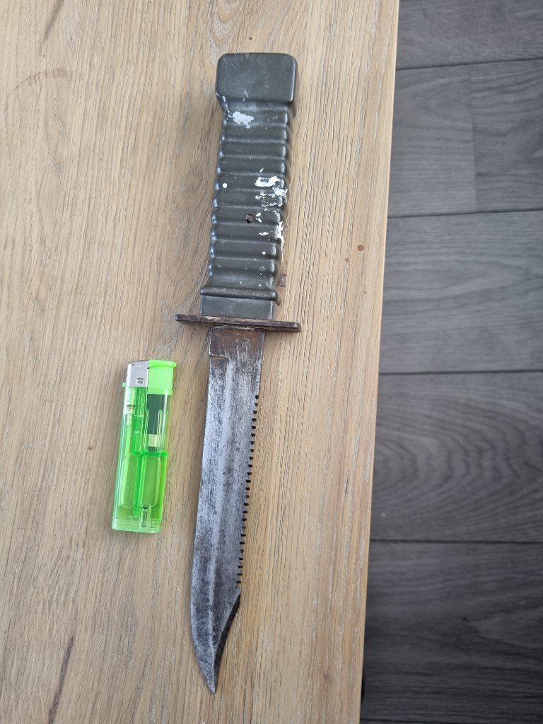 Dan doel je op de KCB (Knife-Cutter-Bayonet) 70, een afgeleide van de beroemde Kalahnikov bajonet en geproduceerd door Eichhorn en NWM (Nederlandse Wapen- en Munitiefabriek) Dit lijkt er erg op inderdaad.