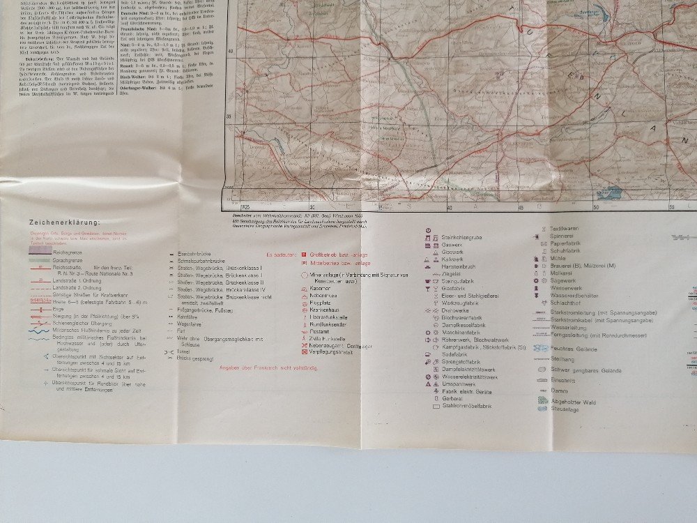 Wie kan me helpen met onderstaande kaarten? Dit zijn 2 kaarten uit 1939 en 1940. Ik vind heel veel stafkaarten uit wo2 op het net maar kan niets vinden over deze 'geheime' 'militärgeographische Einzelangaben' en al zeker niet in hun originele kartonnen mapje. In het eerste mapje zitten twee kaarten zoals je op de foto's kan zien.