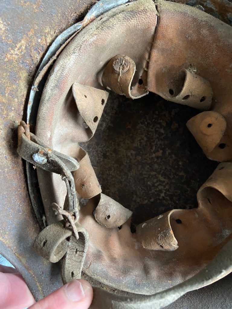 Ik heb circa anderhalf jaar geleden via Marktplaats een Duitse helm gekocht van een mijnheer die hem gekocht had van een oudere heer die ging verhuizen naar een verzorgingshuis. De oudere mijnheer heeft, zo luidt het verhaal, de helm gekregen als klein jongetje tegen het einde van de oorlog van twee (Britse of Canadese) soldaten die bij hen thuis ingekwartierd waren.