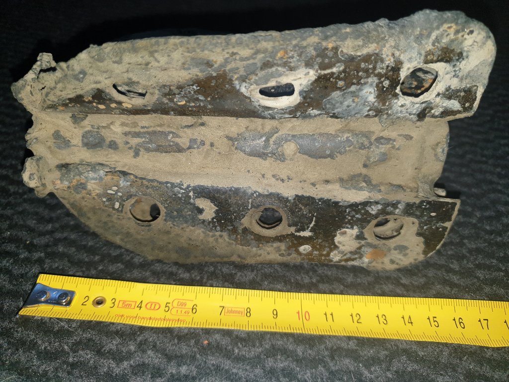Vanochtend weer actief met de detector en magneet in het water geweest. Wie kan mij vertellen wat voor mortierbom dit is geweest, of is het een vliegtuigbom geweest? De staart lijkt van messing te zijn, en er lijkt een serienummer of typenummer in gedrukt te zijn. De staart is ongeveer 15cm lang, ongeveer 10cm breed.