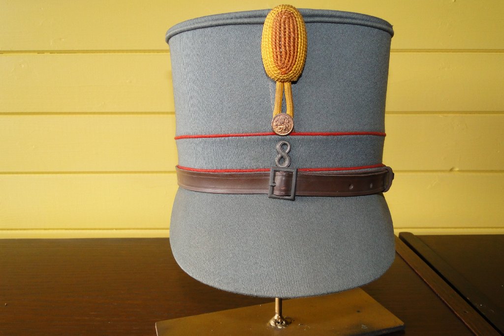 De kepie heeft twee rode biezen en de "leeuw" knoopjes.