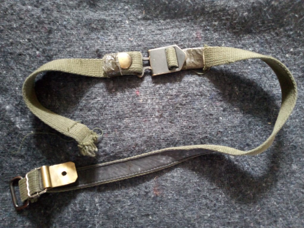 Ik vermoed dat dit een drager is voor munitie. De riem is verstelbaar, halverwege en onderaan zijn lussen aanwezig om de riem door te halen.