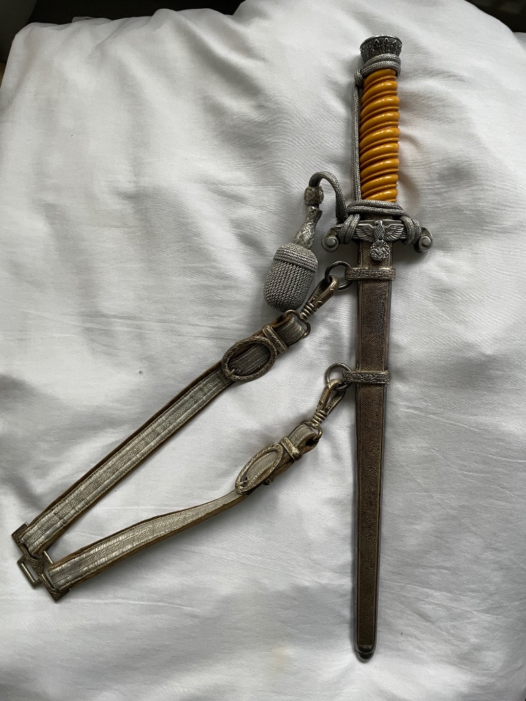 Ik moet eerlijk zeggen dat ik een tijdje geleden een hele tijd heb zitten (liggen, ik lag op de bank) neuzen in de database van de link die je gaf. Ik heb geen gelijke adelaar kunnen vinden en ik maakte me zorgen om de klauwen en het onsymetrische onderlijf van de adelaar. Ik vond de krans slordig gedetailleerd. Ik heb zelfs screenshots van de foto's gemaakt om ze te kantelen en te vergelijken. En ik las op WAF en nog wat sites dat geëtste klingen ZO zeldzaam zijn, dat de meeste die je aantreft na de oorlog gedaan zijn. Geëtste klingen zijn ook te herleiden tot 1 leverancier werd er beweerd, maar ik heb niet de juiste bronnen om dat te verifiëren. Tevens zijn direct na de oorlog nog veel dolken samengesteld uit restpartijen onderdelen van allerlei fabrieken, voor souvenierjagende buitenlandse militairen en moet je opletten geen Frankenstein te kopen.