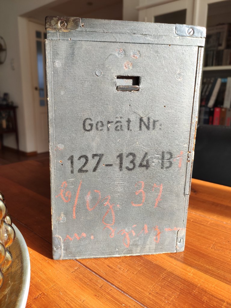 Wat betekenen de cijfers op het opberg kistje van de libellen oktant Luftwaffe?